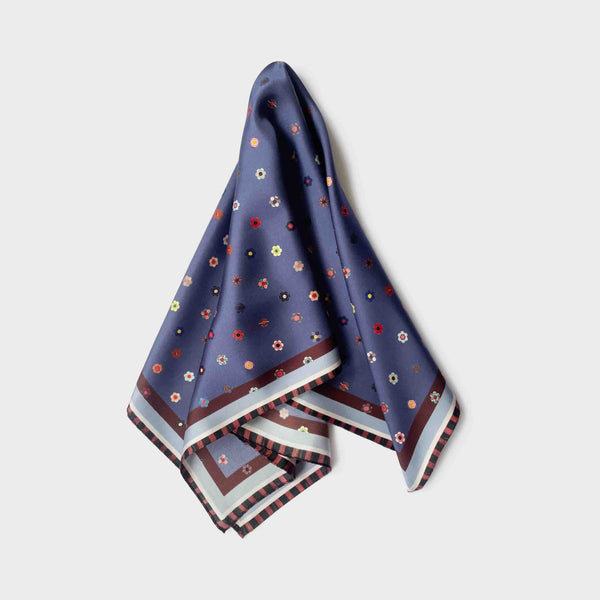 Ein Hauch britischer Geschichte trifft auf moderne Eleganz: Das Seidentuch Fanny Blue ist inspiriert von den Patchwork-Arbeiten englischer Upperclass-Ladies des 19. Jahrhunderts. Damals wurden unvollendete Handarbeiten und Stoffreste kostbarer Seidenkleider kunstvoll zusammengesetzt: ein frühes Beispiel für stilvolles Recycling.